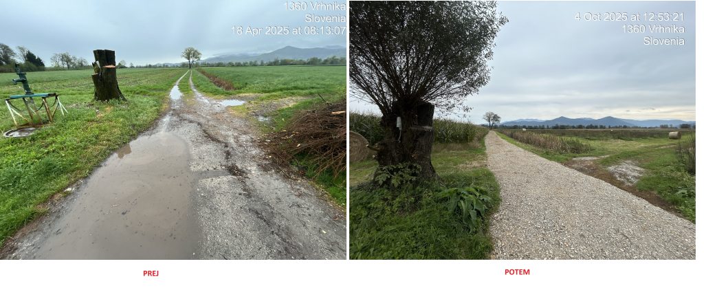 Storitev prevoza, izravnave – gredanja, nasutja in obreza vejevja je za nas izvajalo podjetje Mateja Skubica s. p. Dela sicer še niso povsem zaključena, vendar bodo kmalu.
